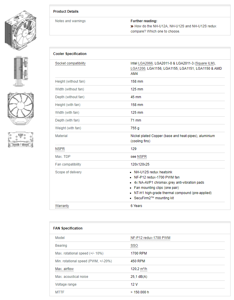 المواصفات الفنية لوحدة التبريد NH-U12S Redux
