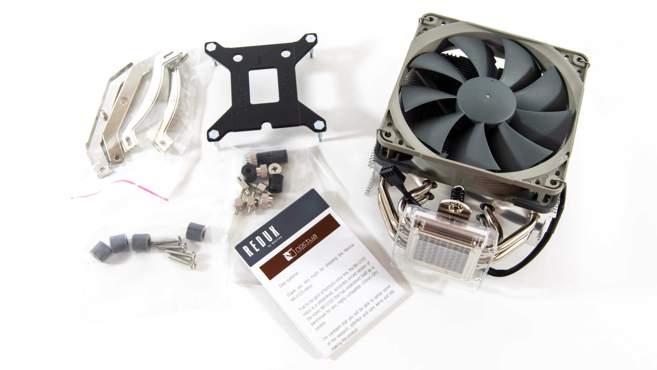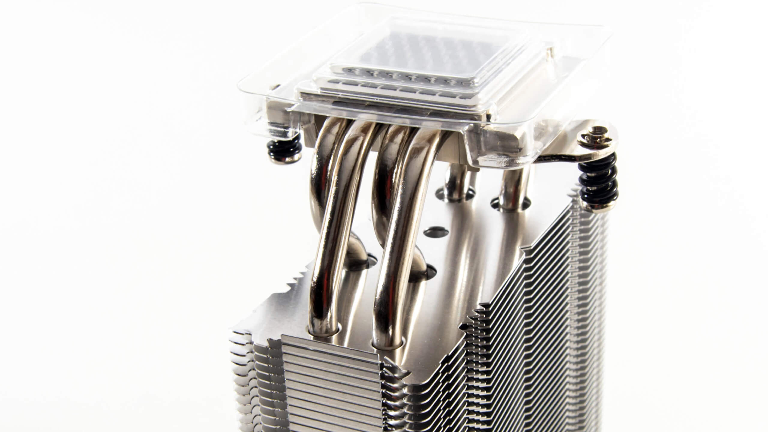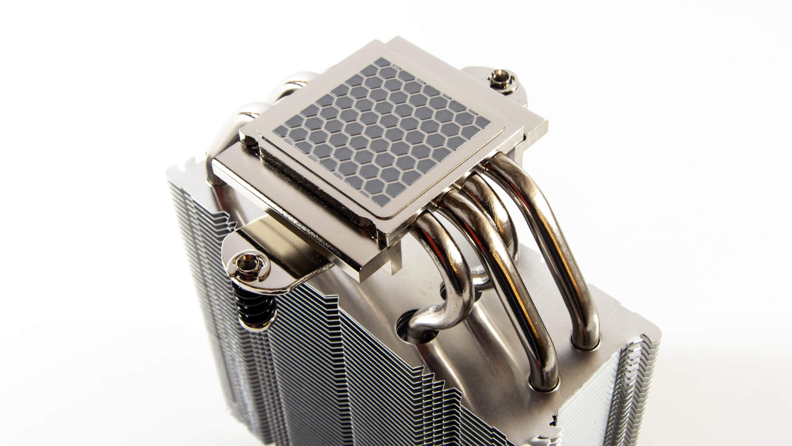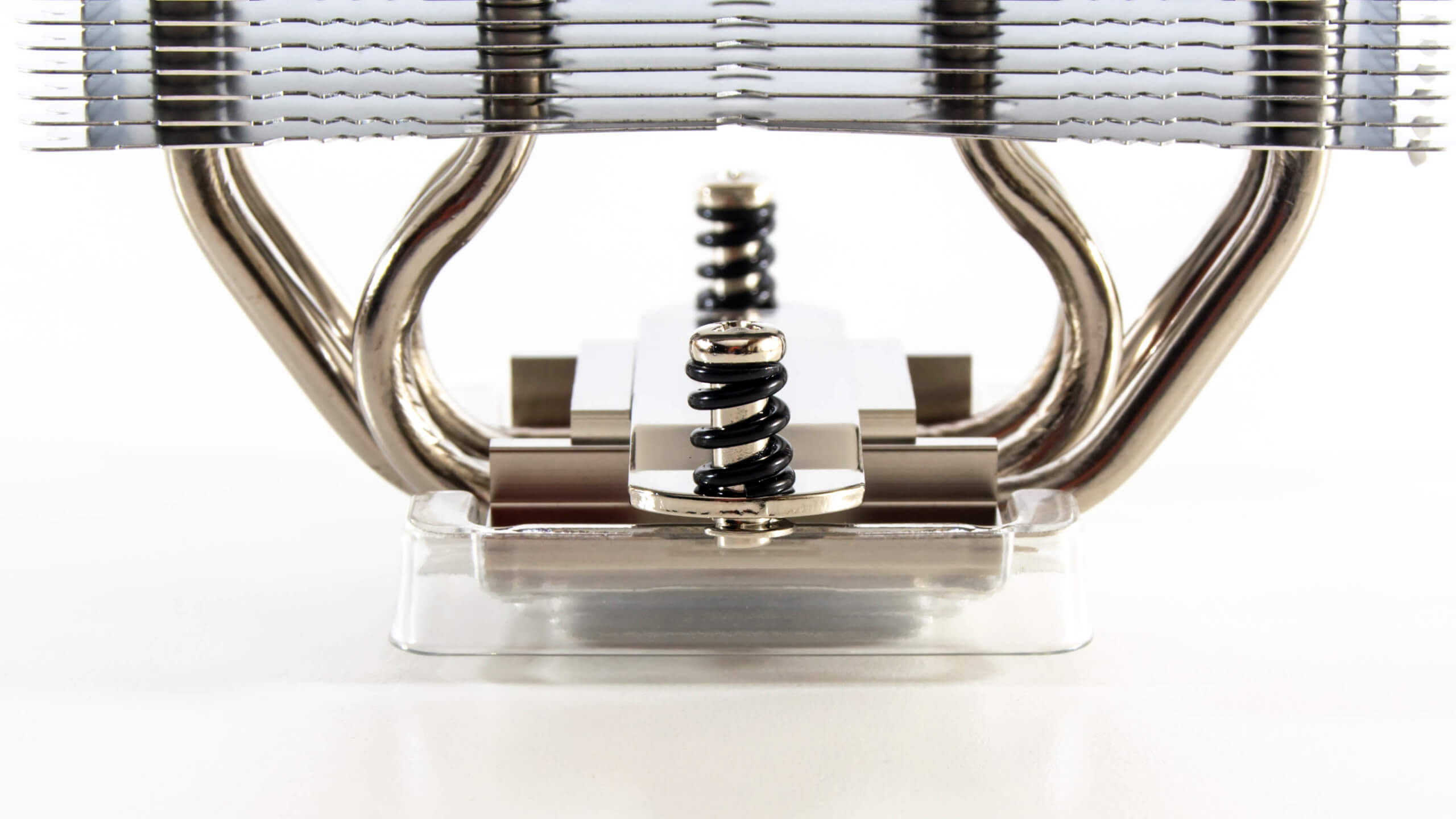 الانابيب النحاسية مشكلة على حرف U تتخل القاعدة و سوف تجد اداء التثبيت الاساسية من Noctua كما فى جميع المبردات مثبتة فوق القاعدة النحاسية