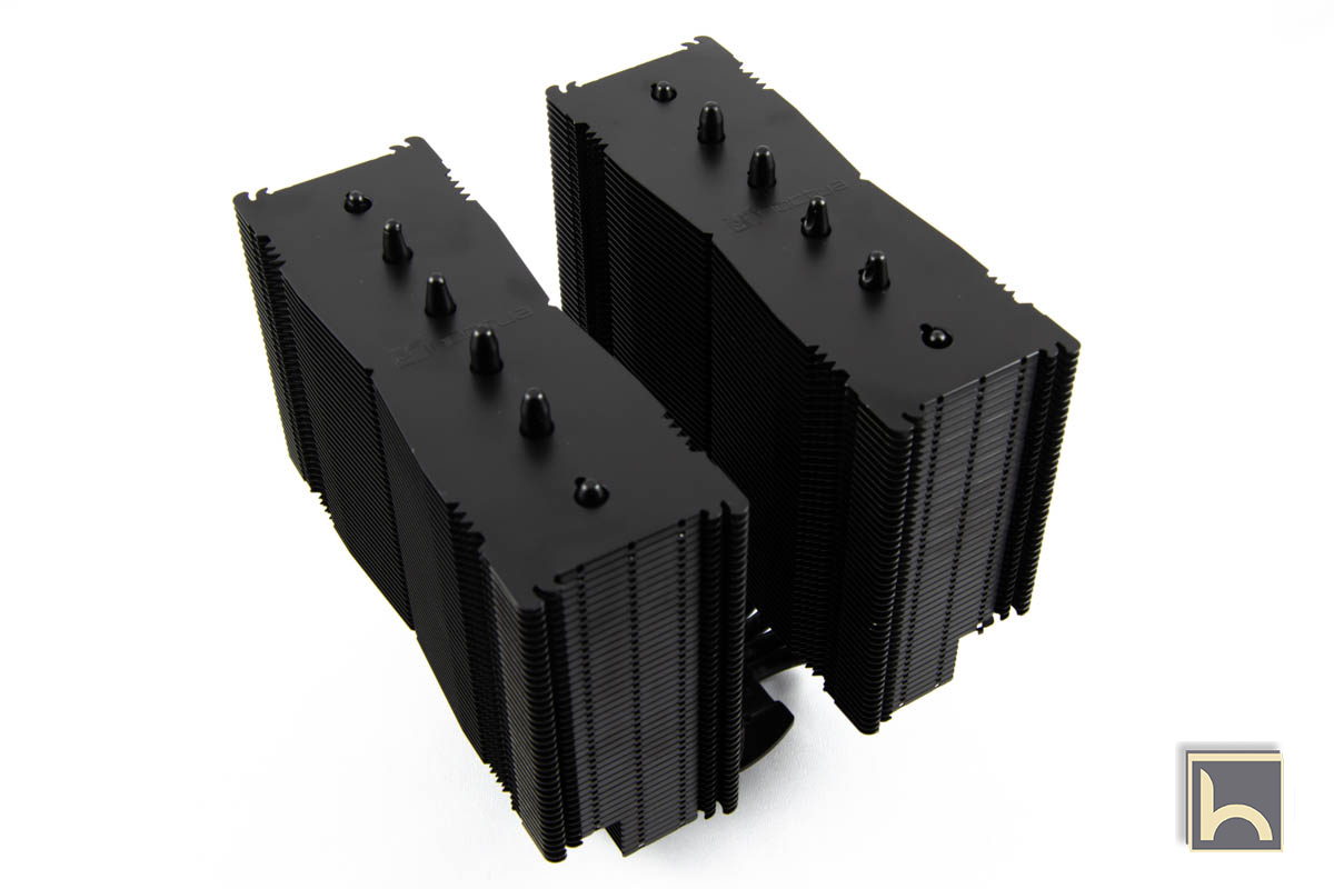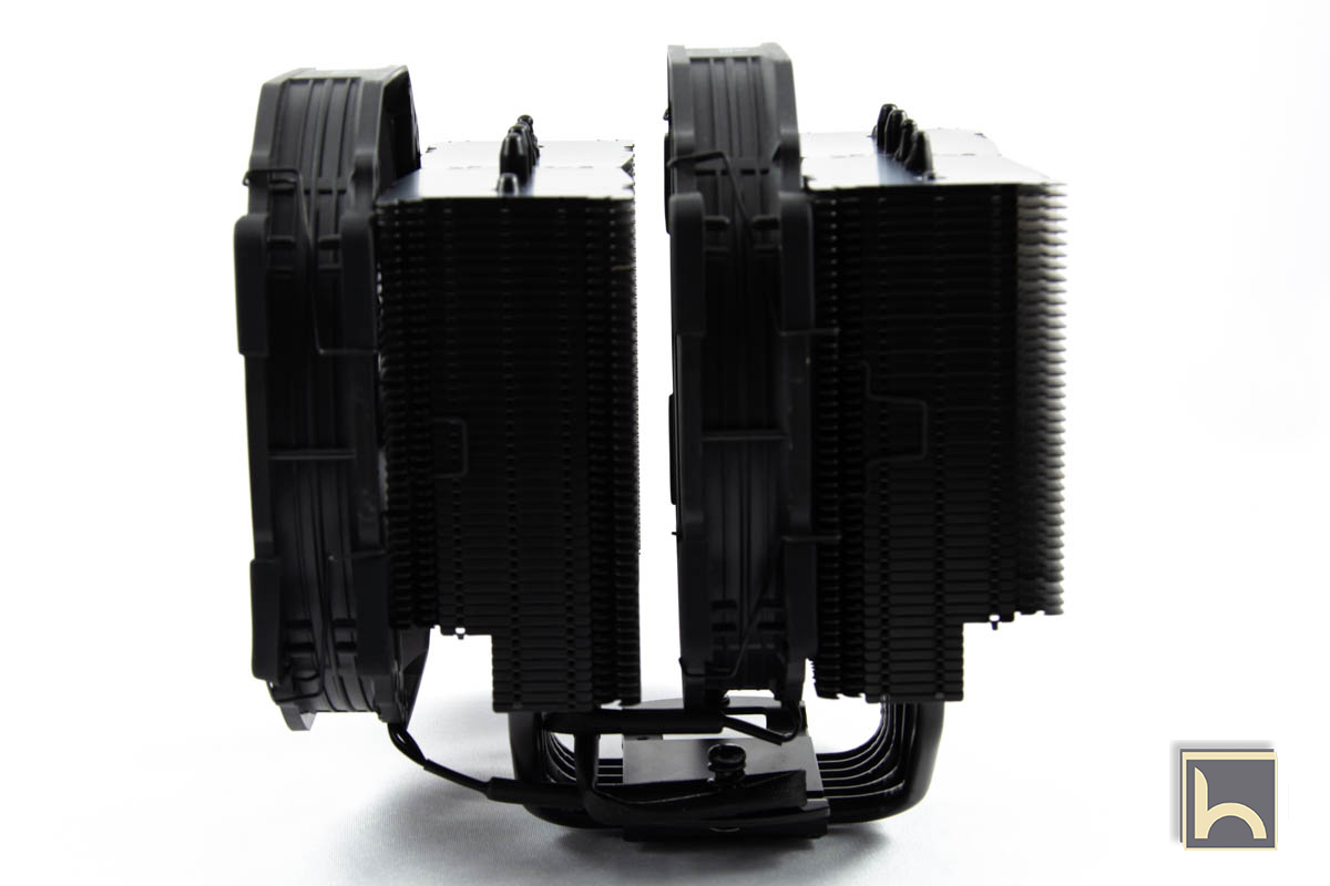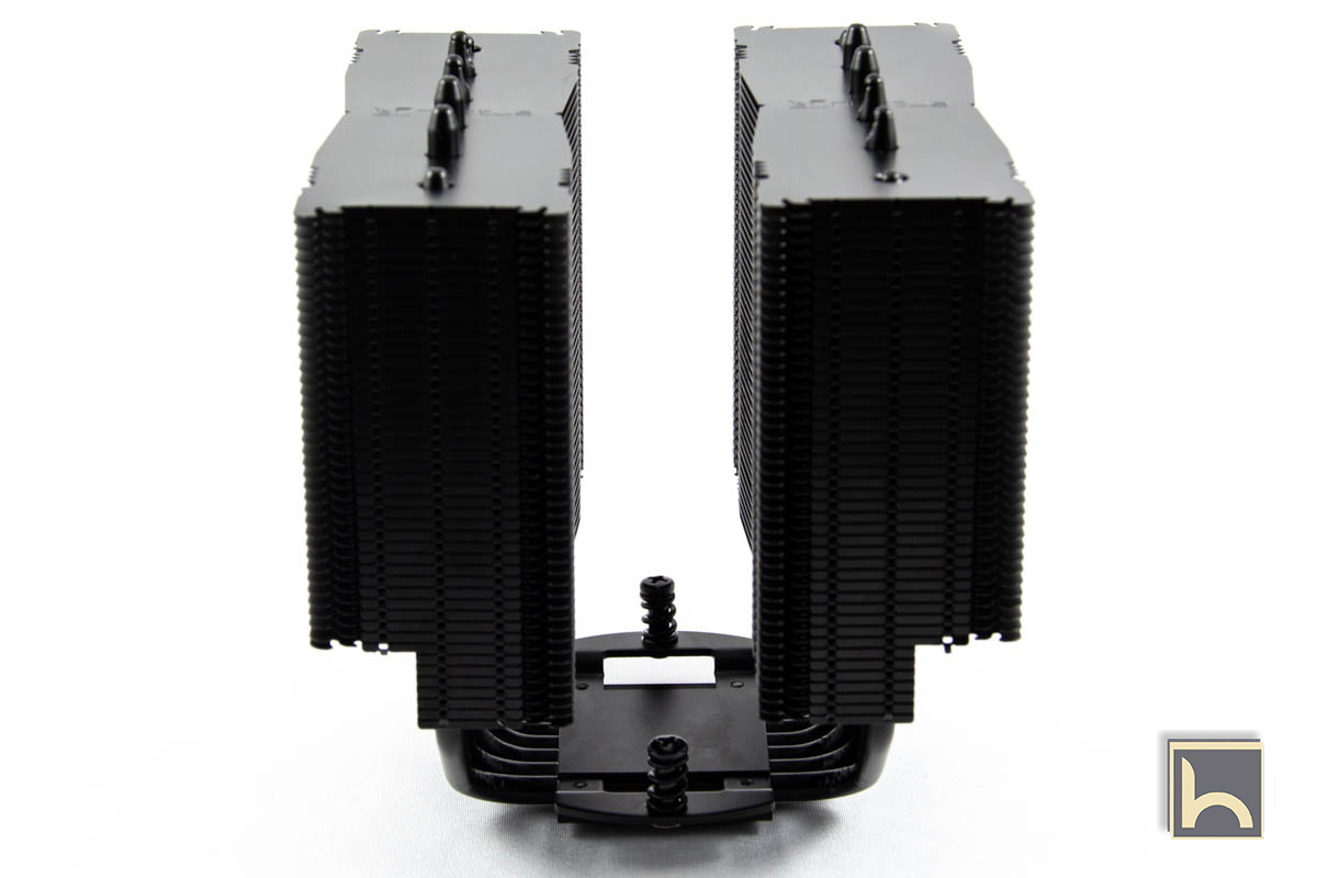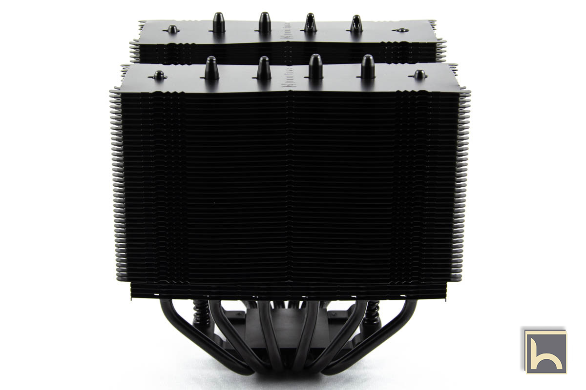 تصميم المبرد الهوائى NH-U12S chromax.black يعتمد على برج واحد بعرض 120 ملليميتر و أرتفاع 158 ملليميتر من القاعدة او 125 ملليميتر بدون القاعدة مكون من 50 شريحة الومنيوم لفاعلية التبريد