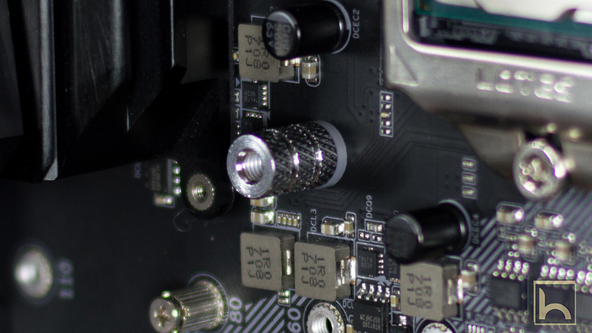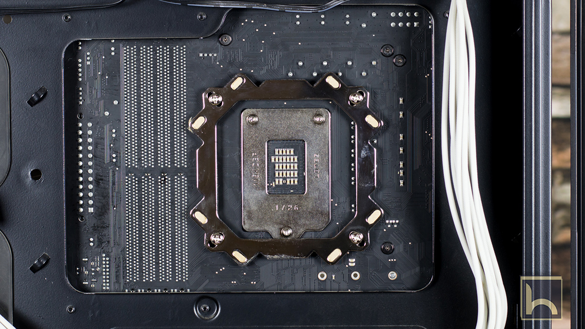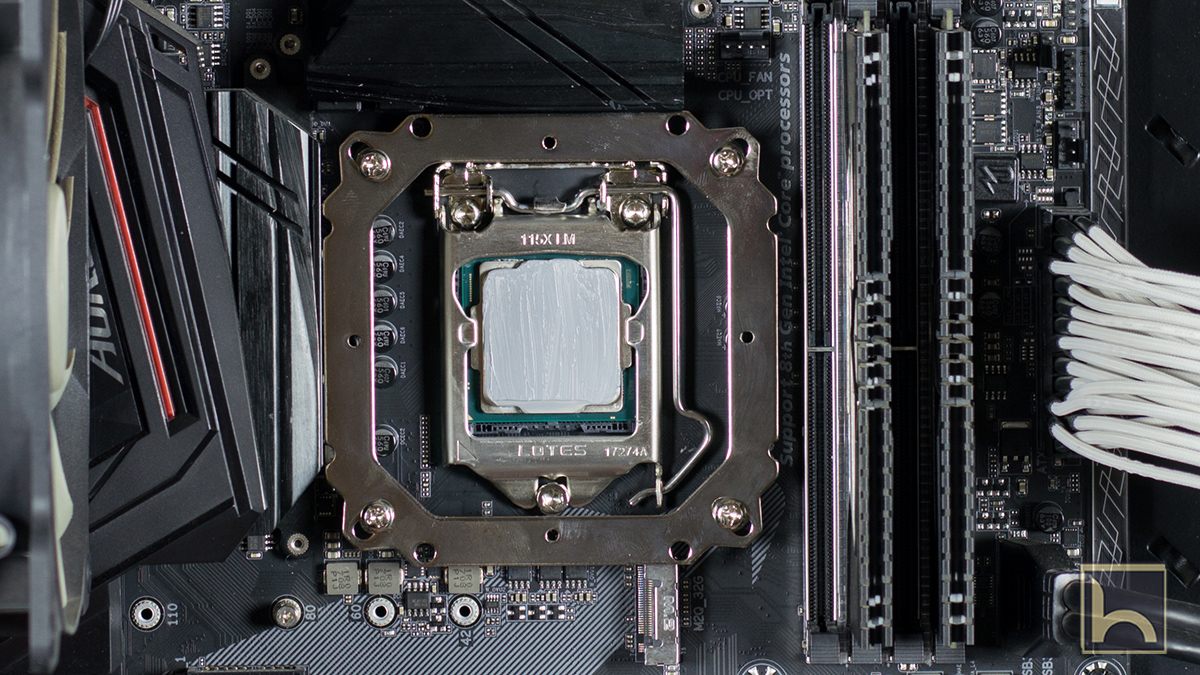 اتباع دليل المستخدم هو اسهل طرق التثبيت و البداية بتثبيت الراكة الخلفية فى اللوحة الرئيسية و التى تأتى بعدة تجويفات تتناسب مع جميع مقابس اللوحات الرئيسية و كما موضح بالصورة بالاسفل تم استخدام الثقوب الخاصة بمقبس LGA 115X و تمرير المسامير حتى تمر الى الواجهة المقابلة فى اللوحة الرئيسية