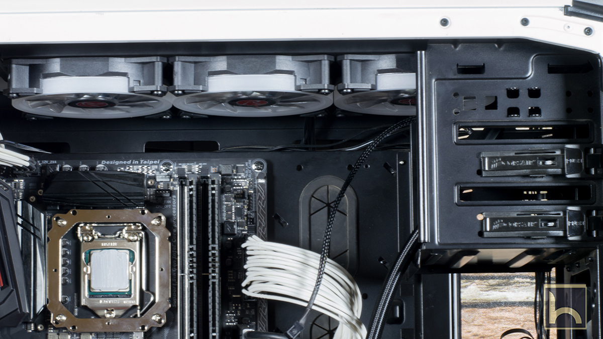 قبل تثبيت البلوك يجب ان يتم تثبيت الردياتير فى الكيسة اولا و نظرا لان المشتت بطول 360 ملليميتر فالانسب ان يكون فى الكيسة من الاعلى و نلاحظ وجودة مسافة كبيرة بين المشتت و اللوحة الرئيسية اعتقد اننى قد اضيف مراوح اخرى ليعمل عن طريق Push & Pull