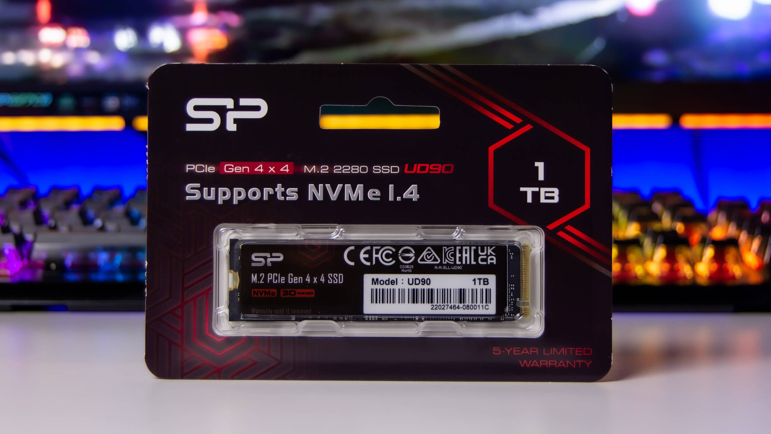تقدم Silicon Power  وحدة التخزين UD90 فىت ثلاثة طرازات بمساحات 250 و 500 جيجابايت و 1 تيرابايت للطراز الموجود لدينا فى مراجعتنا مع قدرة تحمل لهذا الطراز 600 تيرا بايت و مدة ضمان 5 سنوات و تدعم وحدة التخزين Silicon Power UD90 تقنية كود تصحيح الأخطاء LDPC لأكتشاف و أصلاح الأخطاء لنقل بيانات بشكل أكثر دقة و تصنيف البيانات المكتوبة أعلى كما انه لديه حماية بيانات E2E و دعم محرك RAID و نظام التشفير AES 256 بت أيضا مدعوم على تقنية DirectStorage من Microsoft و يمكنك التعرف على المواصفات كاملة من هنا