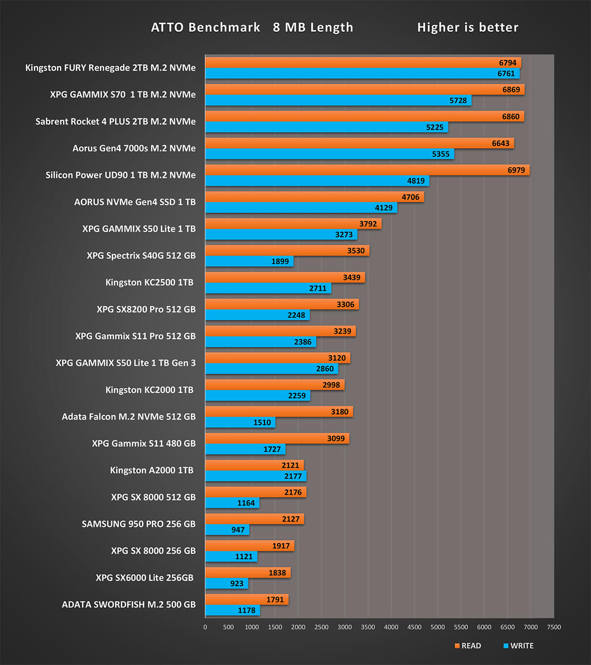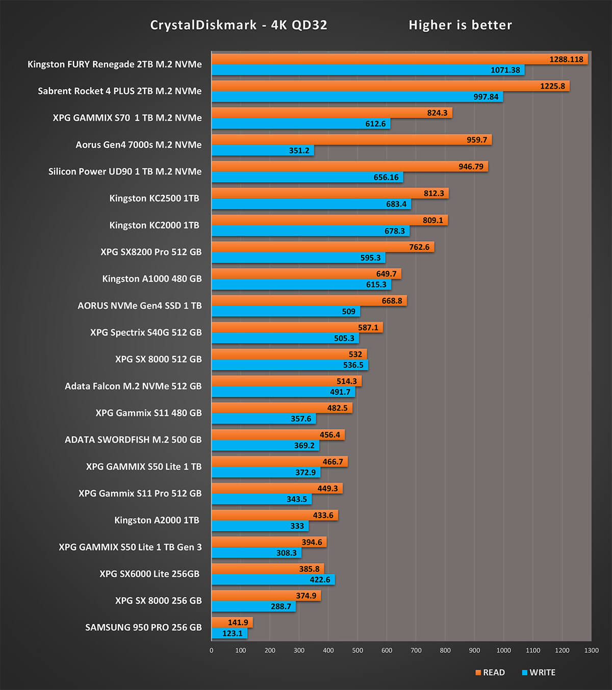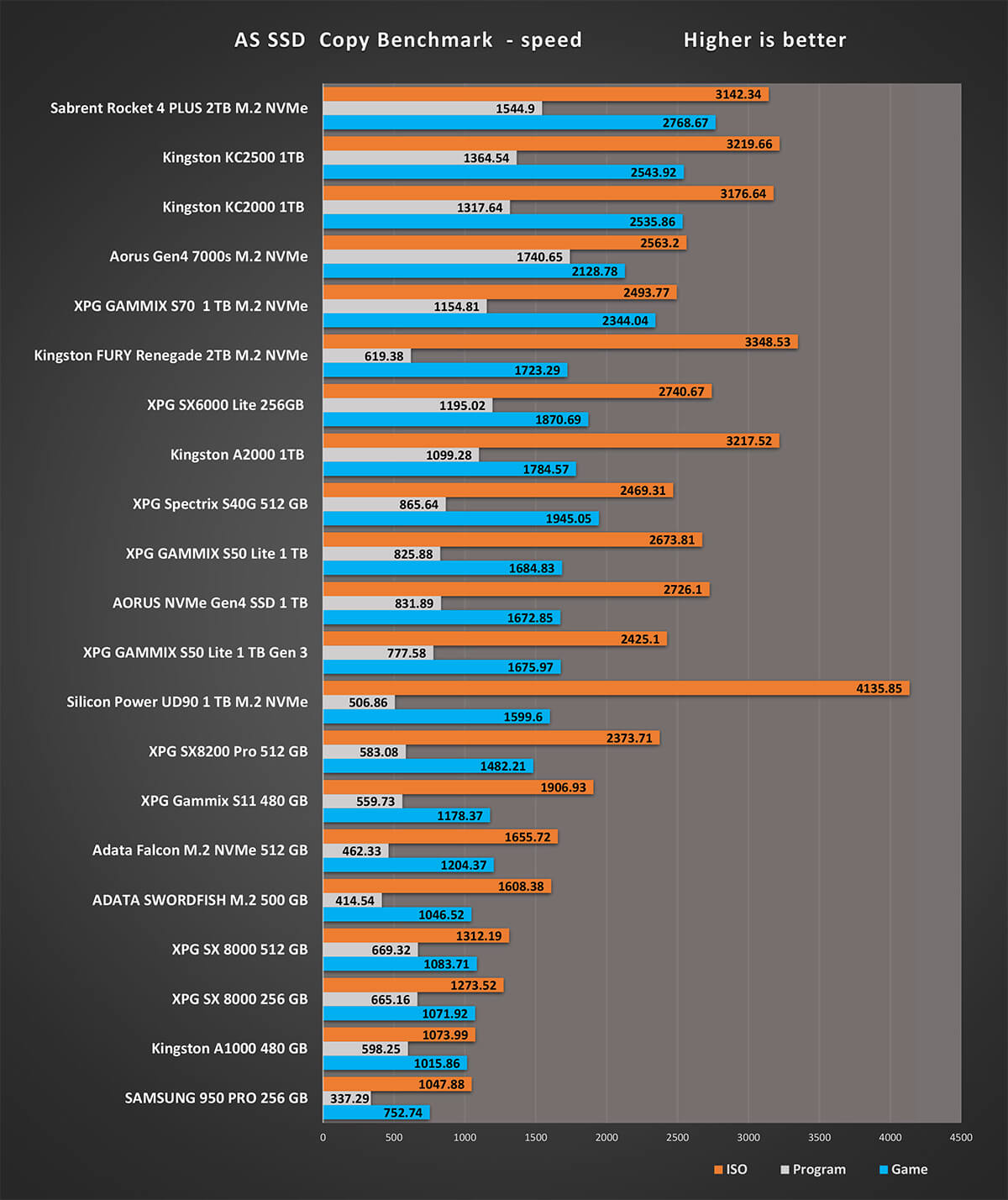 و يوضح هذا الأختبار الفارق فى سرعات أقراص الحالة الصلبة بين الأقراص التى تعمل على بروتوكول NVMe على PCIe 3.0 و الاقراص التى تعمل على بروتوكول PCI 4.0 و منهم  UD90 و تصل سرعة القراءة الى 3868 MB/s و سرعة الكتابة الى 3462 MB/s و هو فى منافسة قوية مع Aorus NVMe Gen 4