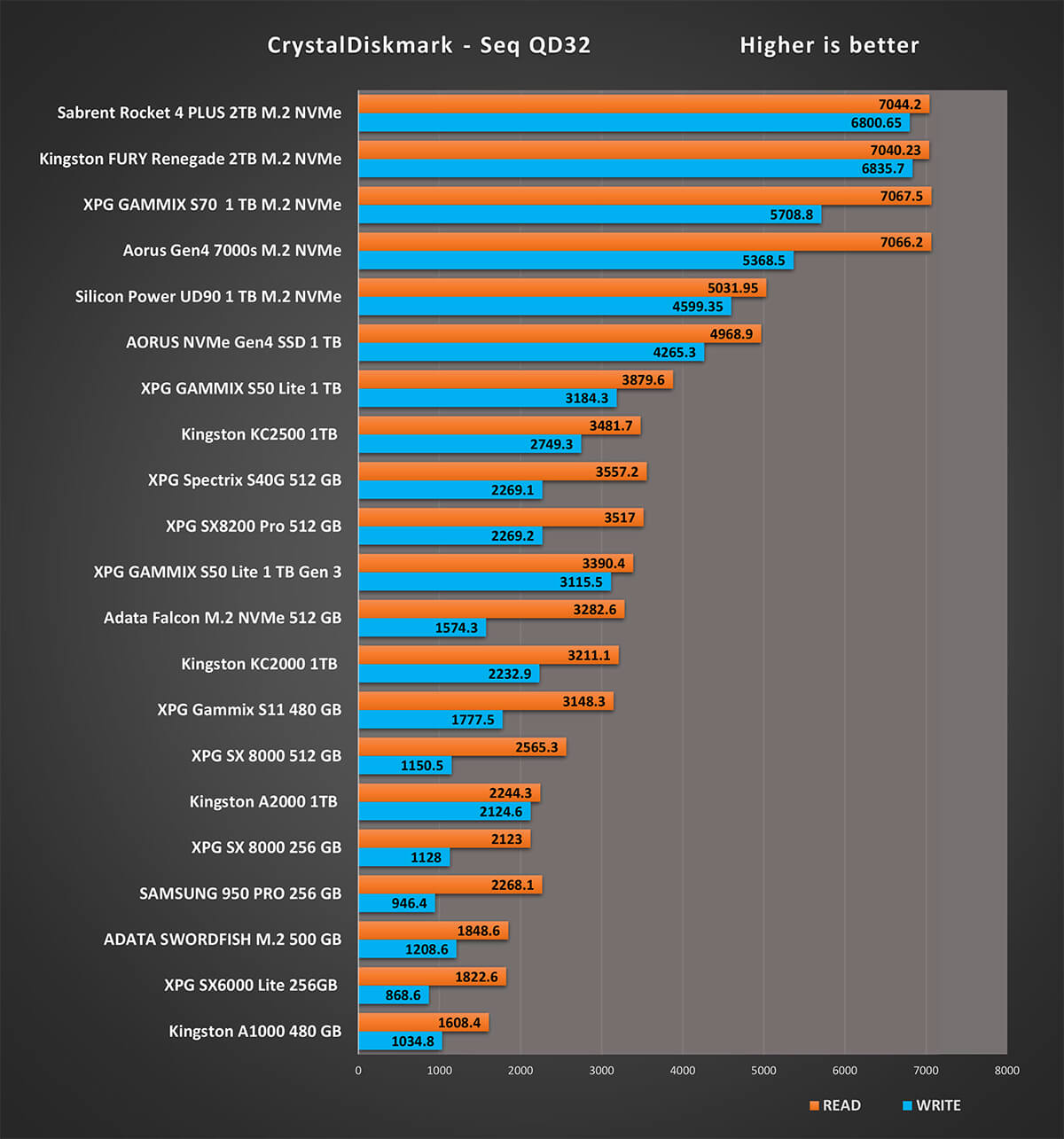أما اداء وحدة Silicon Power UD90 فقد تخطى توقعاتى قبل بدأ مرحلة الأختبارات و تخطى حتى الأرقام الموضحة من جانب SP و لقد كان أختيارهم لوحدة التحكم الحديثة PS5021-E21T من Phison تأثير واضح على اداء وحدة التخزين متفوقا على وحدة تحكم E16 المستخدمة عند بداية انتاج وحدات M.2 PCIe 4.0 NVMe و أيضا مع على وحدة التحكم Silicon Motion SM2267 و كلاهما تم اختبارهم فى وحدتى التخزين Aorus NVMe Gen 4.0 و XPG S50 Lite و هم أقرب المنافسين فى الاداء لوحدة UD90 مع الوضع فى الاختبار عدم وجود ذاكرة فورية DRAM فى وحدة UD90