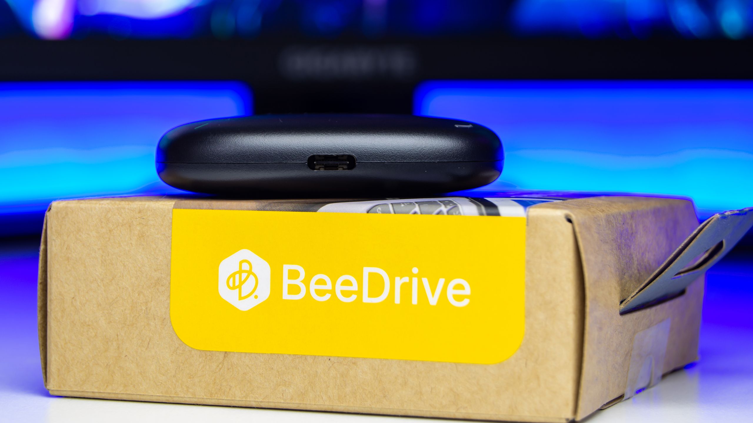 يحتوى صندوق التغليف على كتيب تعليمات التشغيل بالاضافة الى وحدة التخزين BeeDrive التى تأتى مغلفة بغلاف من النايلون الخفيف و محاطة بطبقة حماية من الجوانب لحمايتها من الصدمات