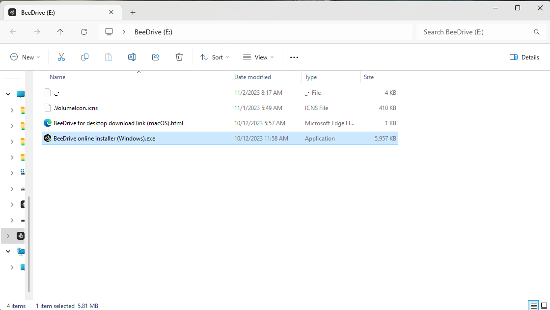بعد ان تعرفنا فى السطور السابقة على وحدة التخزين BeeDrive قمنا بتوصيلها بجهاز الأختبار لدينا و هى تحمل رابط لتحميل نسخة تطبيق BeeDrive For Destop و هى نسخة مخصصة لأجهزة الكمبيوتر
