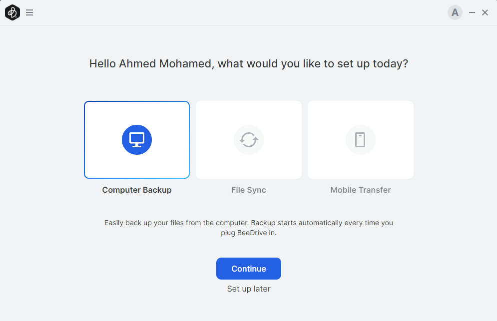 يتيح لك النسخ الأحتياطى من الكمبيوتر Computer Backup اختيار نوع الملفات التى يتم اخذ نسخة احتياطية منها على وحدة التخزين BeeDrive