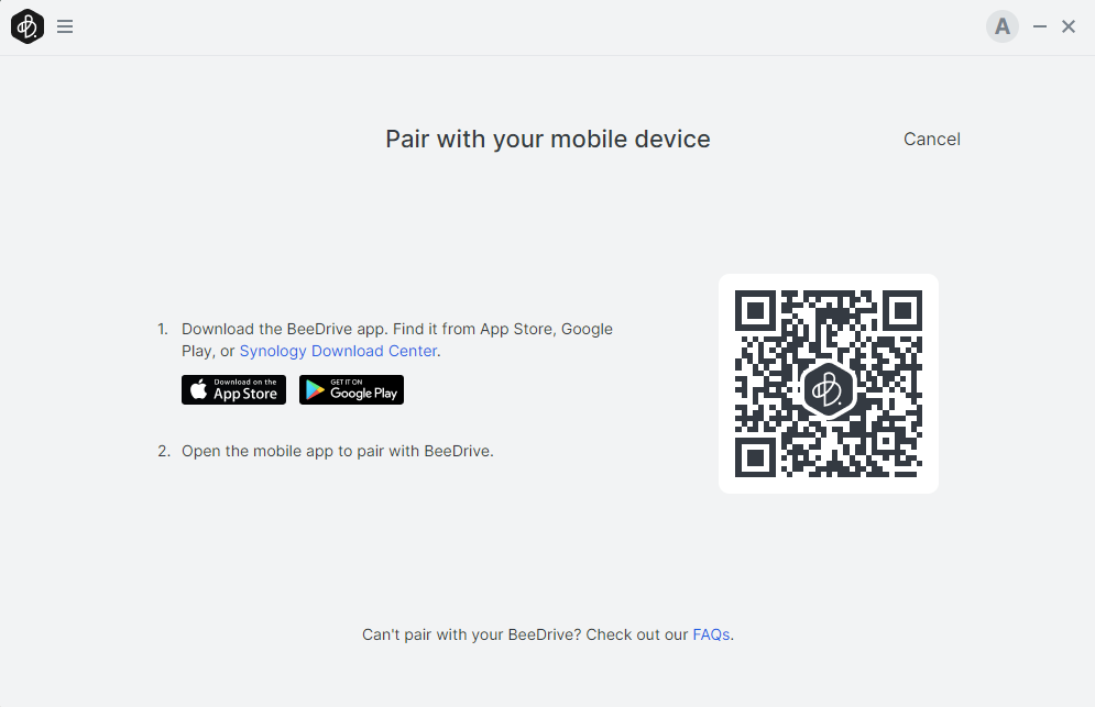 أما النسخ الأحتياطى للهاتف الجوال فيتوجب تحميل تطبيق BeeDrop و يتم تحميله من المتجر الخاص بالهاتف المحمول و يمكن العثور عليه من خلال قراءة الرمز المرفق فى تطبيق BeeDrive For Desktop