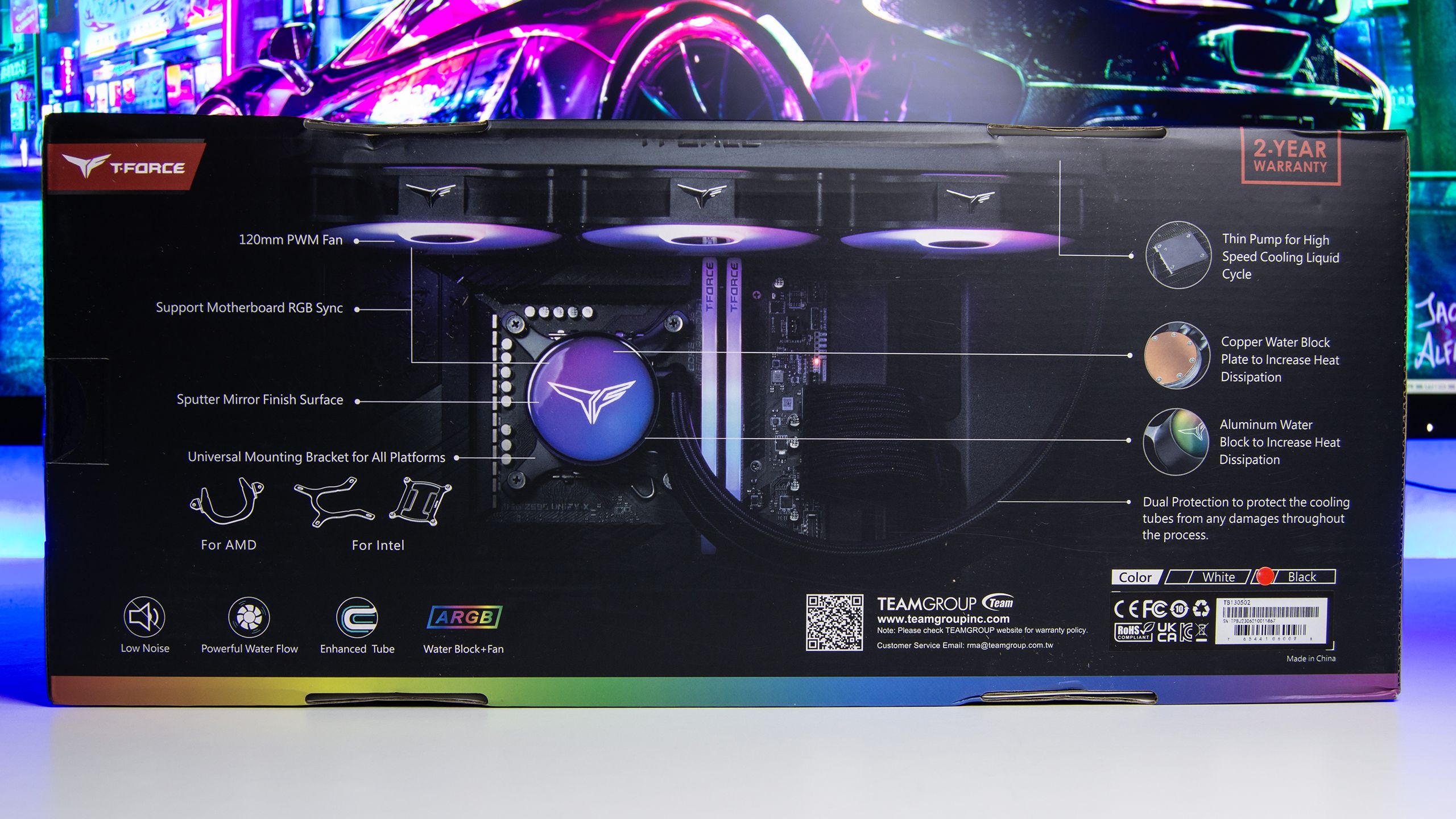 بخلاف ذلك فهو يحتوى على العديد من الميزات نفسها التى يمكن توقعها عند شراء وحدة تبريد للمعالج و هى عدم وجود مشكلات التعارض مع شرائح الذاكرة أو البطاقات الرسومية التى تعانى منها المبردات الهوائية كما أن T-FORCE SIREN GD360E لا يتطلب حلا برمجيا منفصلا أو وحدة تحكم للأضاءة فهو متوافق مع جميع تطبيقات التحكم الخاصة باللوحات الرئيسية أما بالنسبة لجودة التصنيع فأنا أعتبرها رائعة فهو ثقيل بعض الشىء و المراوح ذات هيكل صلب يشعرك بالمتانة