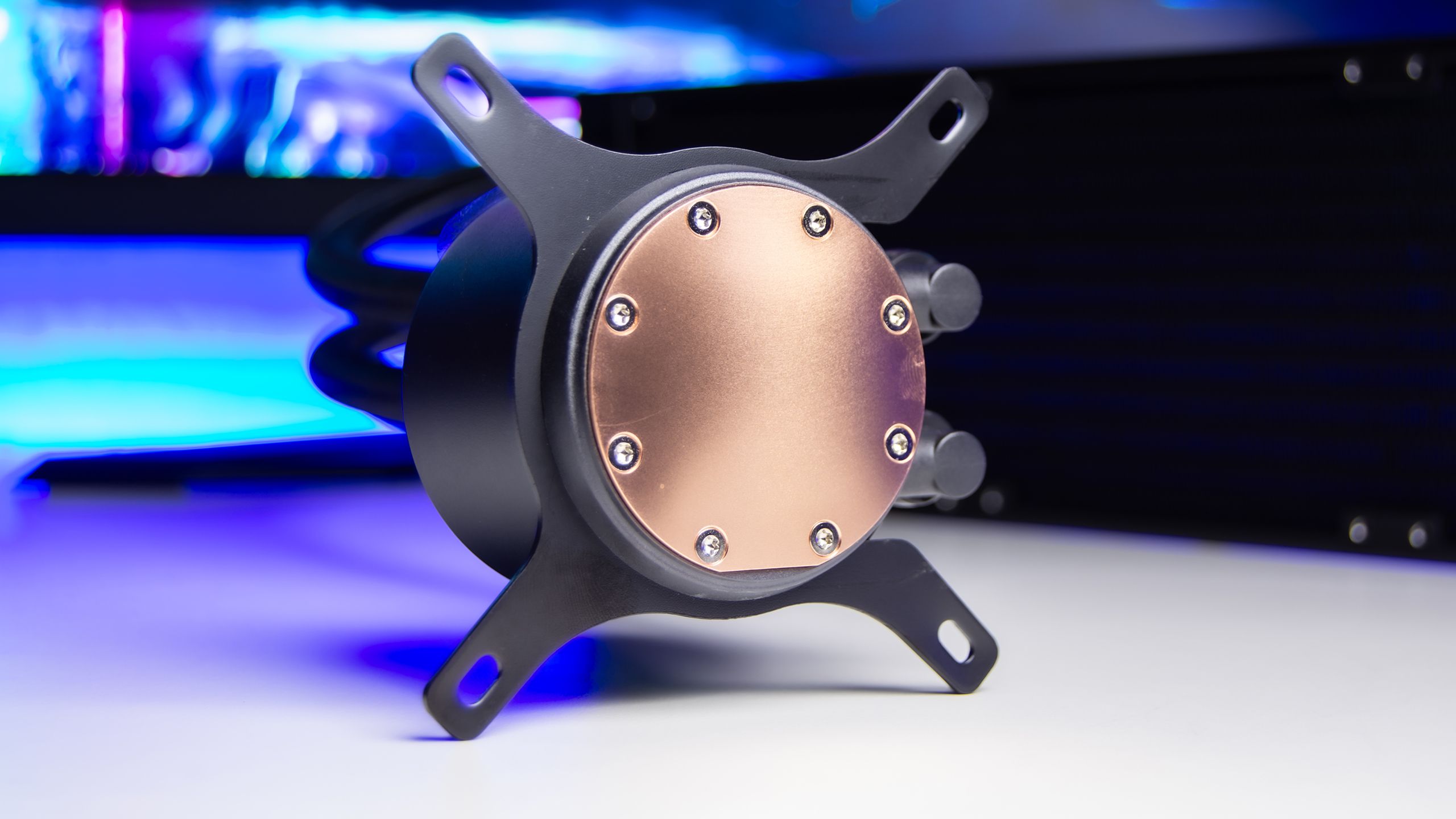 أن وجود المضخة بعيدا عن البلوك يعد أمر رائع يوفر مظهر جمالى و يمنع مرور العديد من الأسلاك حول منطقة المعالج بالأضافة الى تقليل أهتزازات البلوك فوق المعالجات و هو ما سمح ل TeamGroup بوضع مضخة بسرعة 4000±10% RPM و التى سمحت بتقديم أداء مقنع لوحدة التبريد