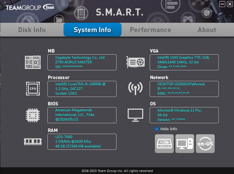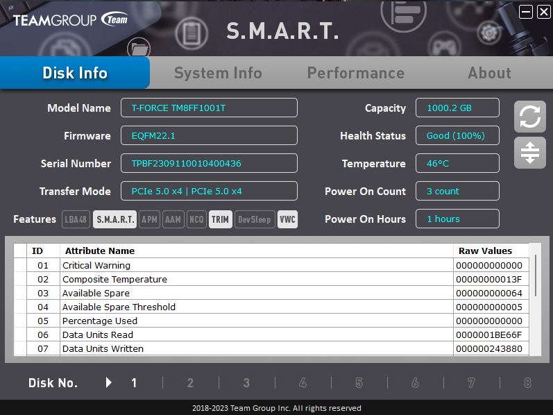 توفر Teamgroup تطبيق SMART Tool للتحكم و مراقبة محرك التشغيل T-Force Z540 و يتيح لك مراقبة درجات حرارة وحدة التخزين و اجراء اختبارات لها و عرض معلومات عن مكونات النظام بالإضافة الى تحديث ملفات Firemware