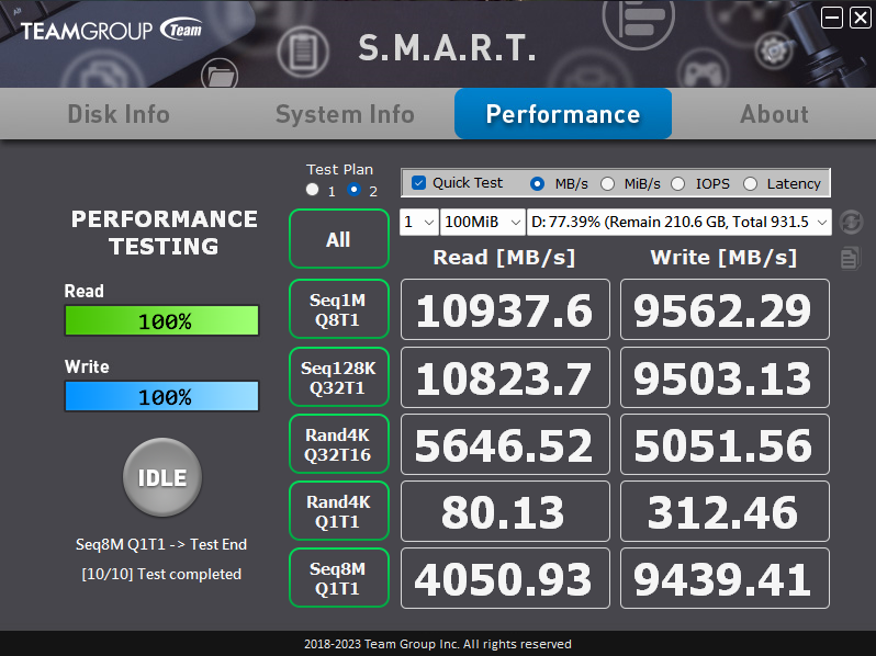 و تعتمد Teamgroup على ذاكرة الوصول العشوائي من Hynix كذاكرة تخزين مؤقت و أربعة من شرائح 3D TLC NAND المكونة من 232 طبقة و رغم أن الملصقات لا توضحها الا اننا نعتقد انها من Micron على كل جانب و يدعم بروتوكول NVMe 2.0 و هو متوافق مع أغلب اللوحات الرئيسية الحديثة التي تأتى برأس M.2 حتى و ان كانت تعتمد على اصدار مسارات PCIe 4.0 فالمحركات الحديثة تعمل على الإصدارات الاقدم من دون مشكلة و لكنها ستفقد جزء من معدل نقل البيانات