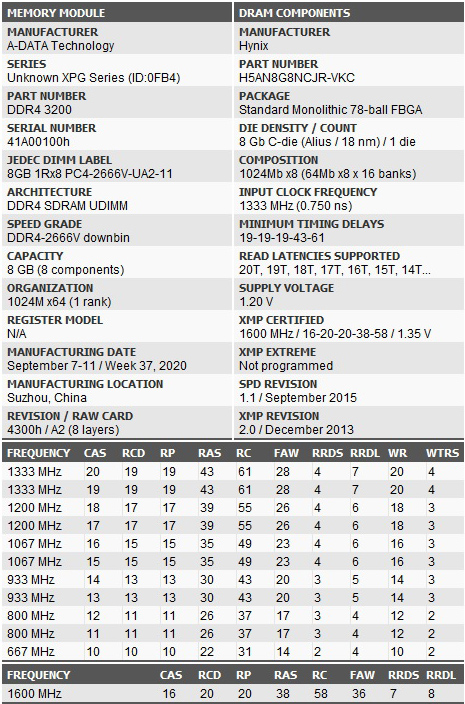 الشرائح المستخدمة فى رامات XPG GAMMIX D20 هى شرائح Hynix و هى تأتى ثالثا بعد Micron و Samsung من حيث الاداء و امكانية كسر السرعة لترددات مرتفعة و لا أعلم اذا كانت XPG تستخدم شرائح اخرى من الذواكر ام لا لكن انا اتحدث عن ما بين يدى الأن